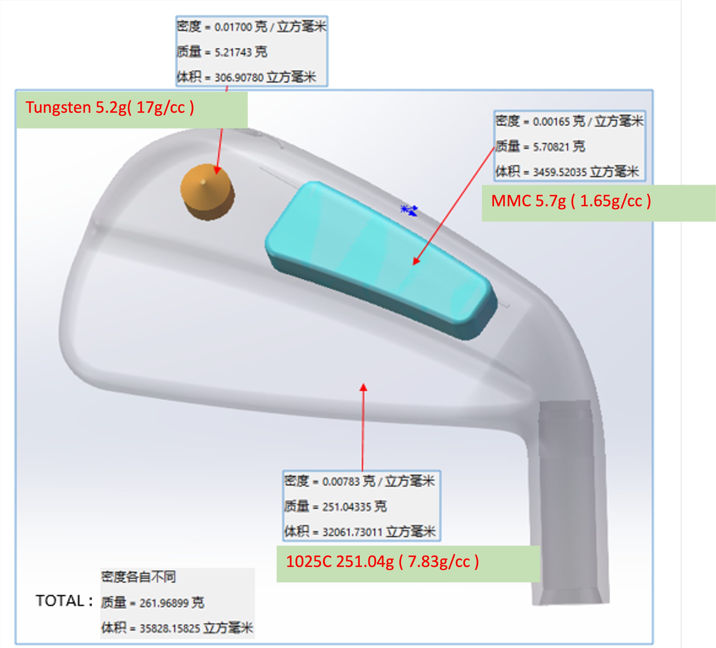 Tungsten & MMC Sandwich for more forgiveness/Larger sweet spot